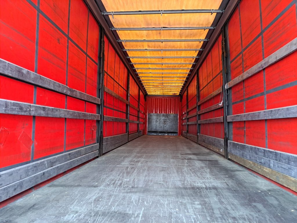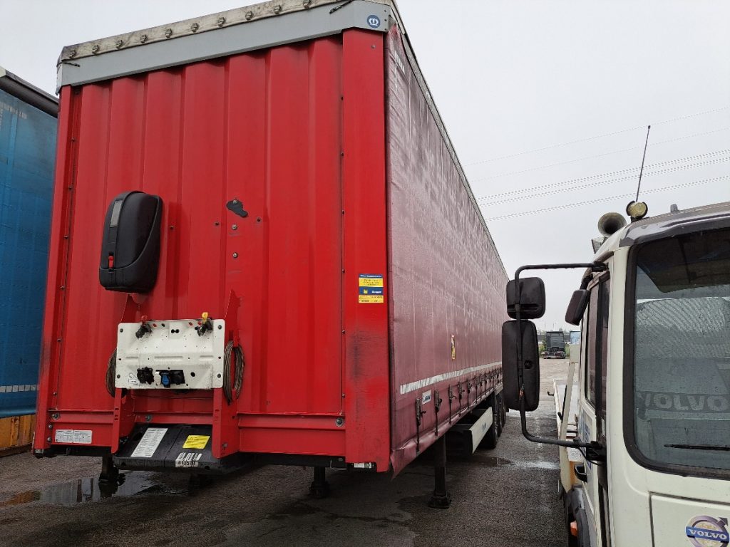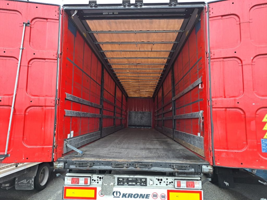 Semirimorchio Krone, 33 europalletts, 1° assale con sollevatore, centinatura con copri/scopri, porte posteriori, teli e piantoni scorrevoli, gommatura 385/65